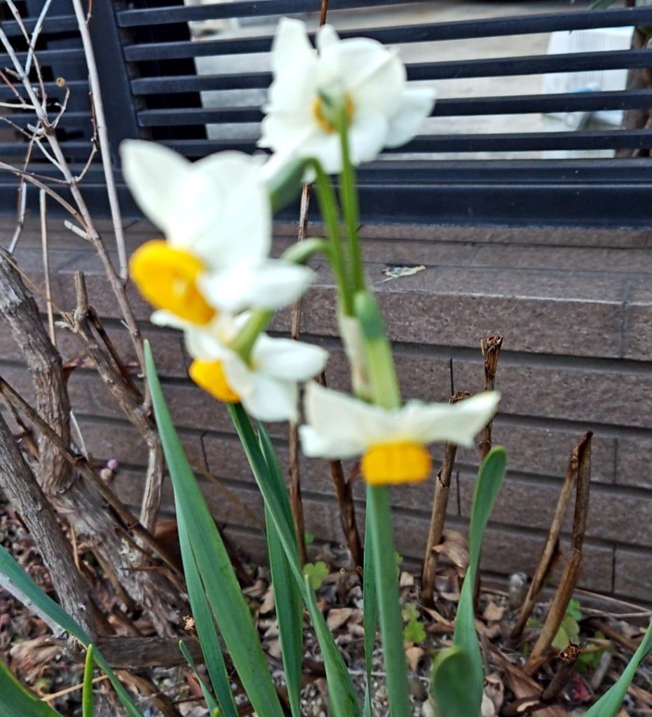あるおうちの外に、白い水仙が咲いていました!