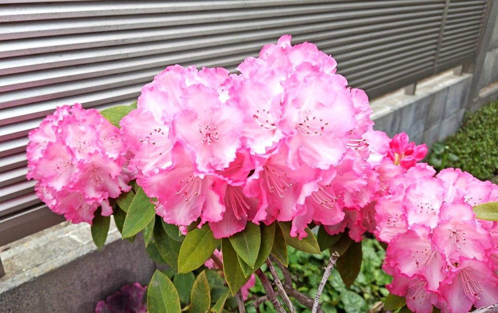 あるおうちの外に、綺麗なピンク色のしゃくなげが、咲いていました!