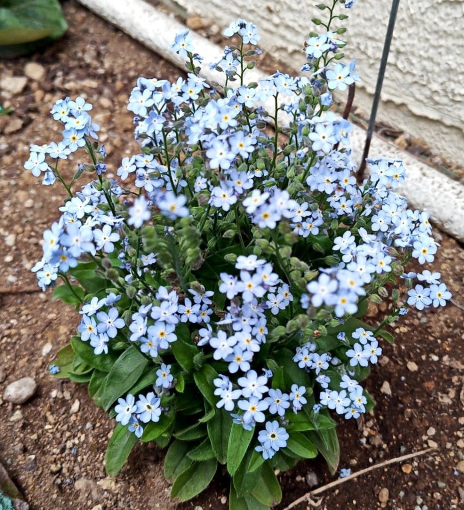 お買い物へ行く途中、 おるお店の外の花壇に、 かわいいペパーミント・ブルーの、忘れな草が、咲いていました🎵