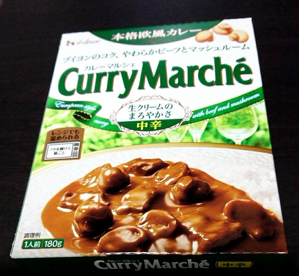 今日の夕食では、 レトルトの 美味しいカレー、 『カレーマルシェ』を、頂きました!