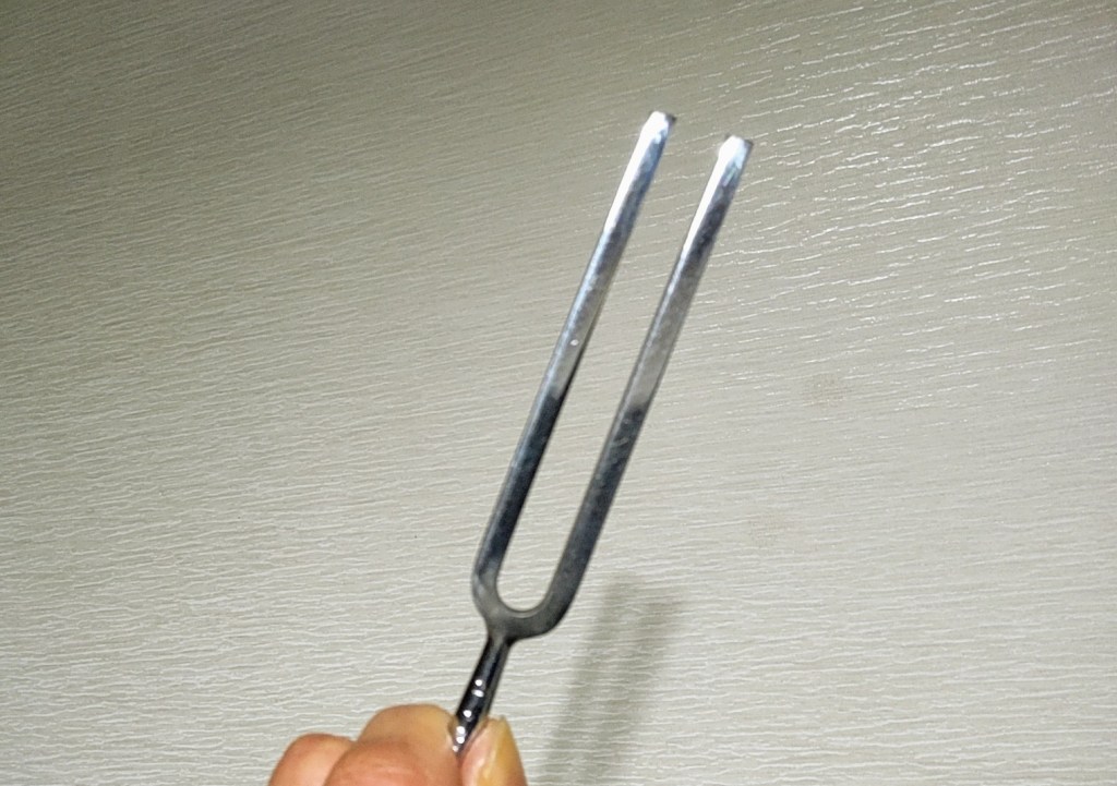 (私も、電子のチューナーを持ってはいますが、) 昔から、膝の横の辺りで、コ〜〜〜ンと叩いて、音叉を使って Violinのチューニングをする、あの感じが好きです🎵
