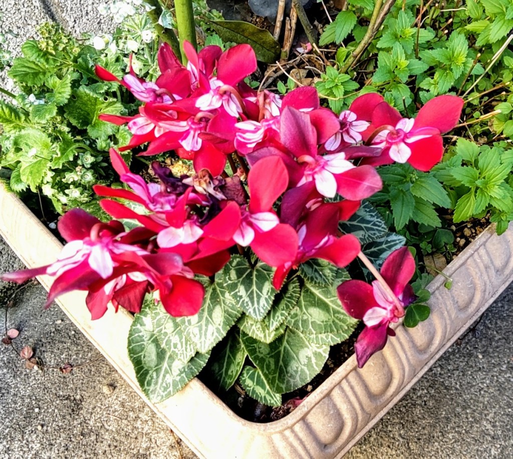 出先で、ちょっと珍しいシクラメンを見つけました!