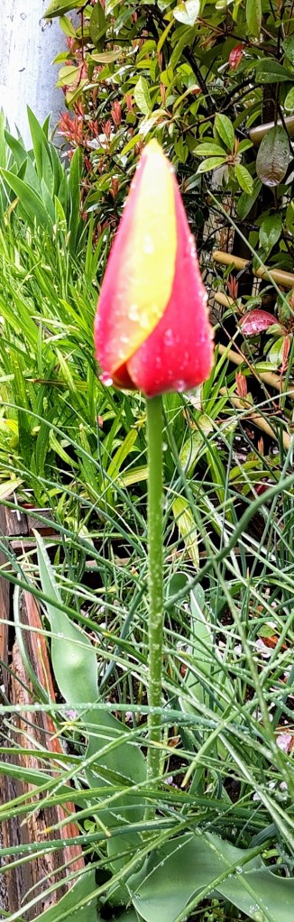 すると・・・、「もうすぐ咲くヨ〜☆」という声が聞こえてきそうな、 チューリップのつぼみが、 しゅぴっ!!☆☆☆=