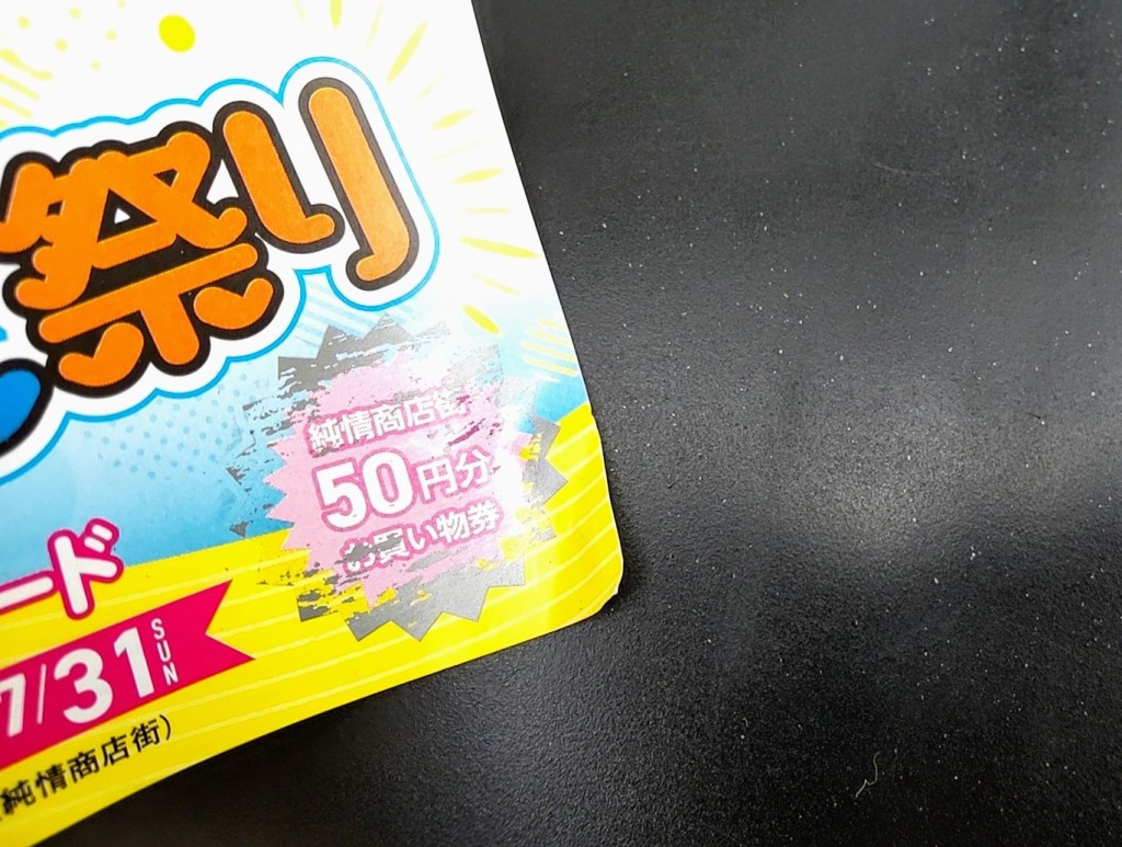 それぞれ削ってみたら・・・、 商店街で使える50円分のお買い物券でした!