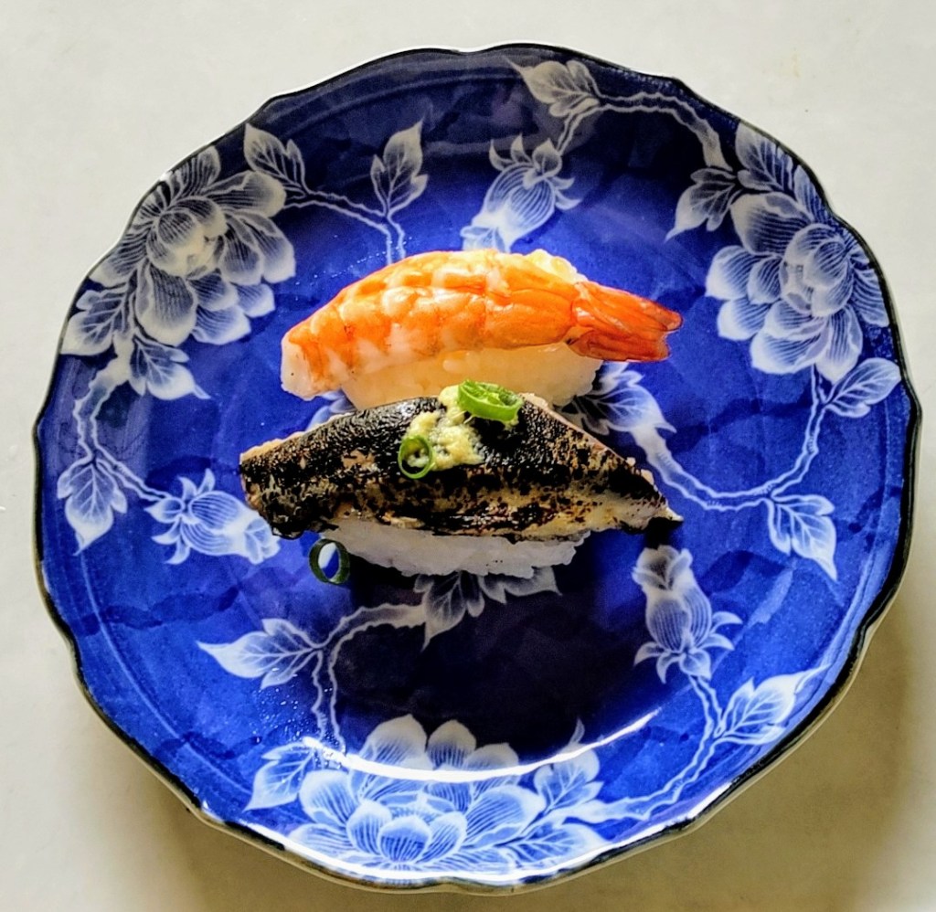 昨日、昼食時に、炙(あぶ)りさんまのお寿司を頂きました!(★写真手前)