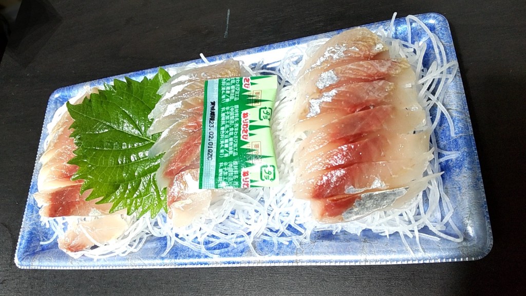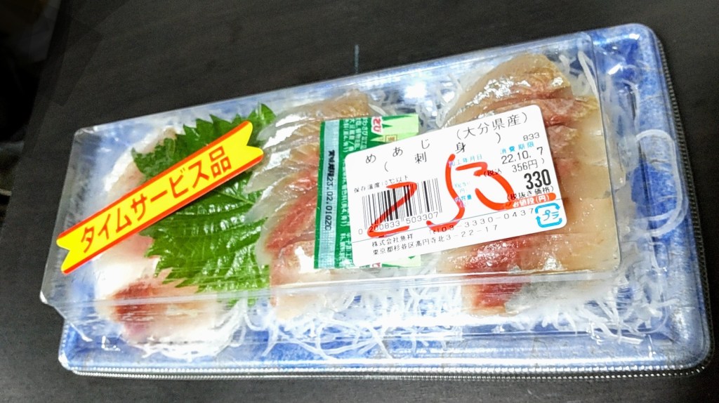 タイムサービスで、メアジの刺身が、何と! 80円引きでした〜〜〜!!