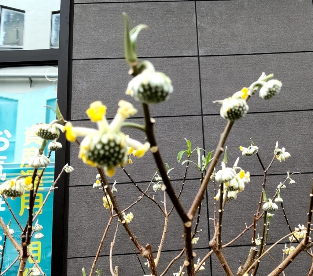道の途中で、ちょっと久しぶりに、 三叉(みつまた)の花を発見〜!