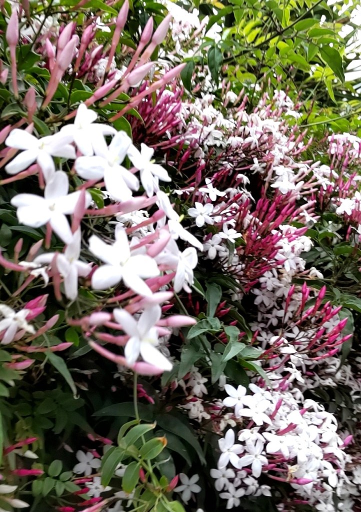 あるおうちの前に、 羽衣(はごろも)ジャスミンの花が、いっぱい、咲いていました!