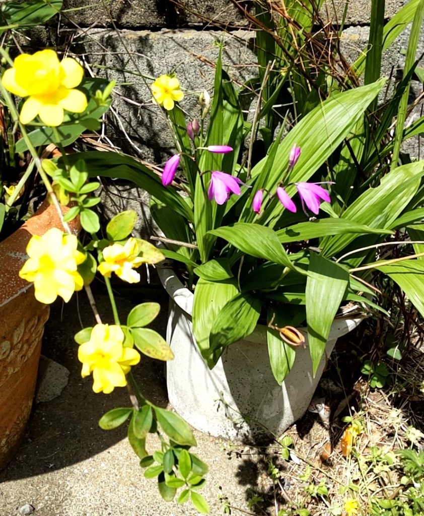 お隣の、ピンクの紫蘭と、葉っぱの緑色と合わさって、