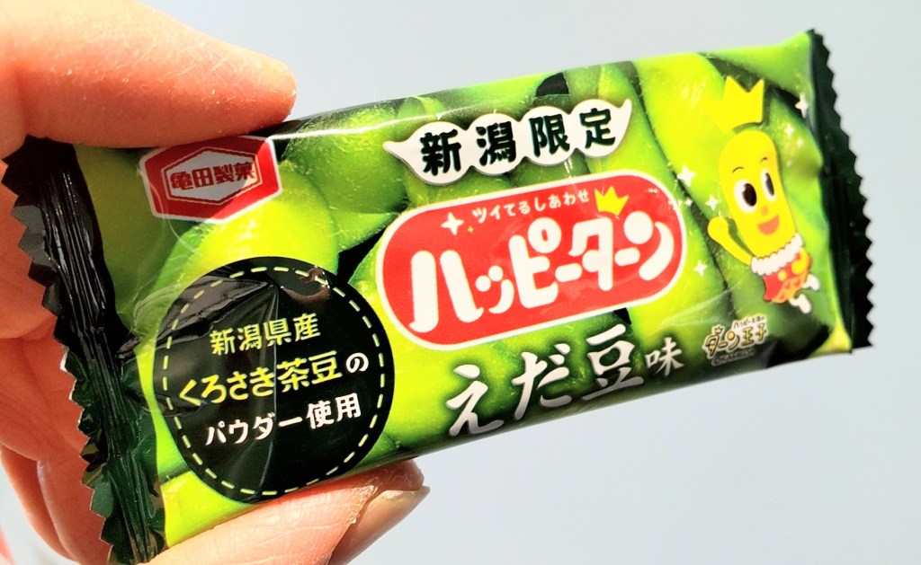 バイト先の方から、新潟限定、えだ豆風味の、ハッピーターンを、頂きました!