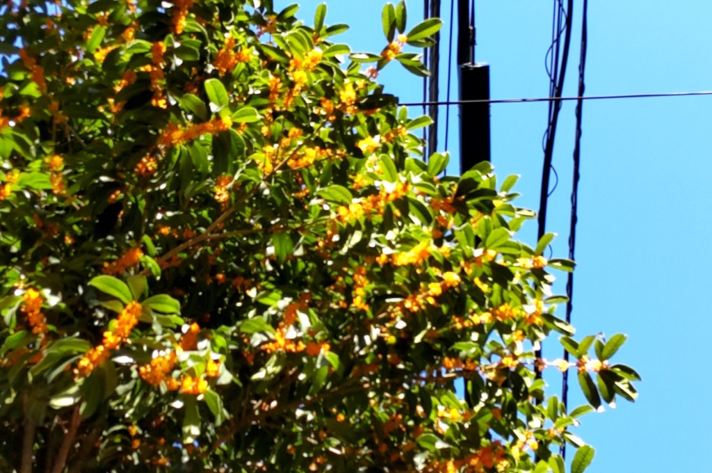 (★↑今日の写真: 良い香りで 空を見上げたら、 沢山のキンモクセイの花を発見。。。☆☆☆=)