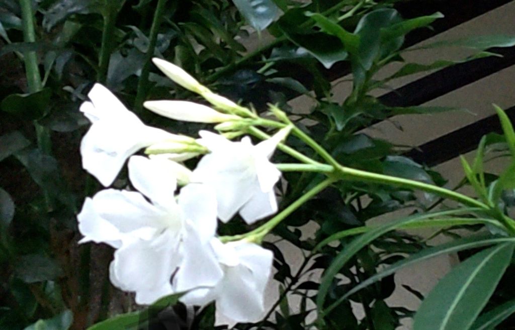 先程、あるアパートのお庭に、 白い夾竹桃(きょうちくとう)が、咲いていました!