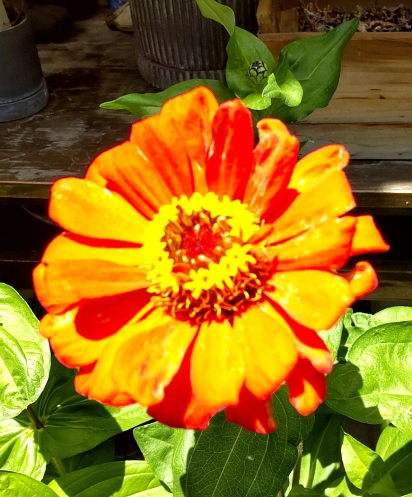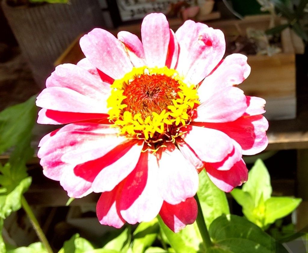 あるお店の外に、百日草が、元気に咲いていました!