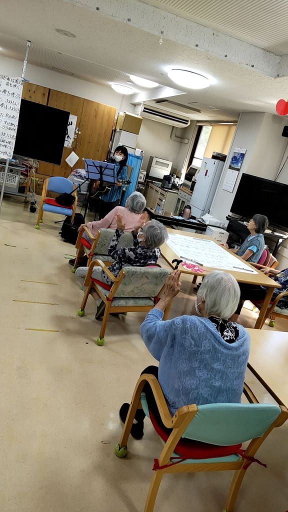 元気に、手拍子🎵 投稿者:MEGUMI2024年8月25日カテゴリー:ボランティア・コンサートタグ:ボランティア・コンサート 昨日の、デイサービスでの、ボランティア・コンサート☆ ーーーーーーーーーーーー 『青い山脈』は、いつも大人気で、 皆さん、大きな手拍子で、一緒に歌って下さいました🎵 共有: クリックして X で共有 (新しいウィンドウで開きます) X Facebook で共有するにはクリックしてください (新しいウィンドウで開きます) Facebook いいね 読み込み中… 関連