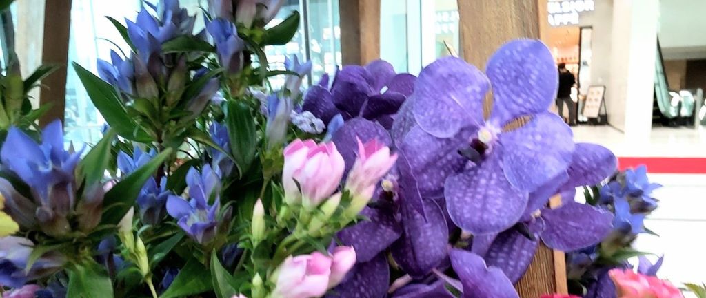 バイト先の近くに、青紫と ピンク色のりんどうの生花が、飾ってありました🎵