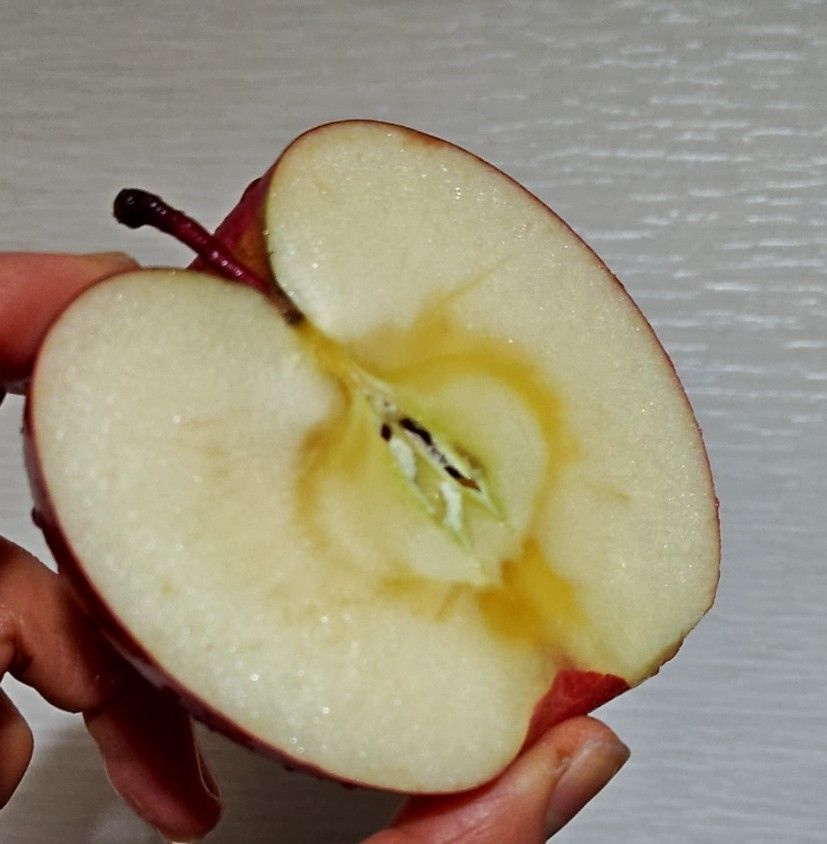 真っ赤で、かわいいりんごだなぁ〜と思いつつ、 先程、包丁で切ってみたら。。。、