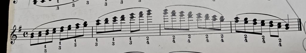 ヴァイオリンで、その時の練習曲に合わせた音で、 今は、上図のような、三度の音階練習をしています☆