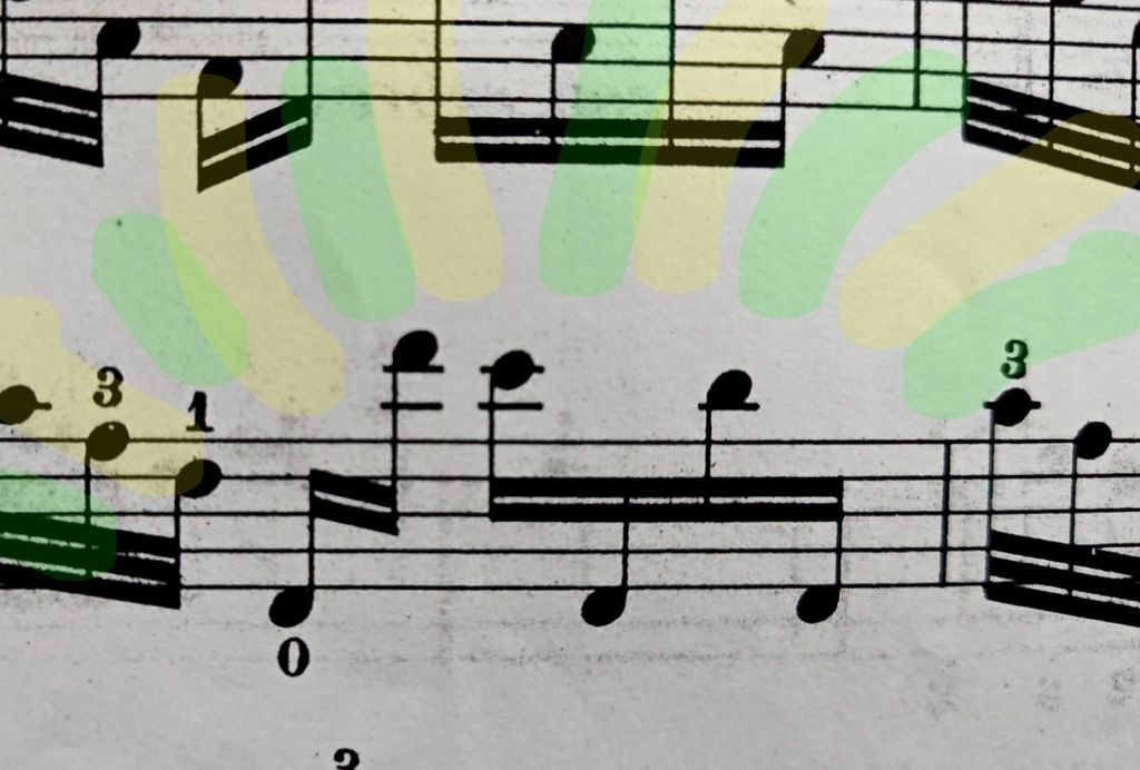 今練習している、Violin教本の曲の中で、 あまり見たことのない、面白い音符が登場〜っ!!