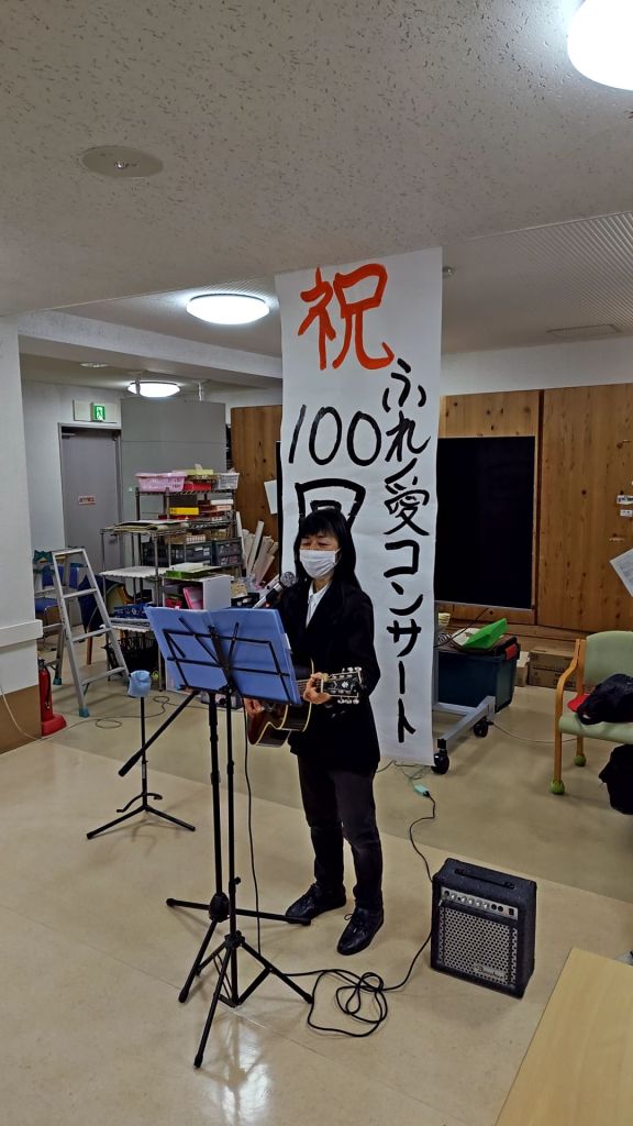 職員さんが、【祝100回目】と書いた垂れ幕を、バックに掛けてくださいました🎵☺