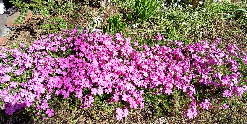 実家の庭で、今、ピンク色の芝桜が咲いています🎵