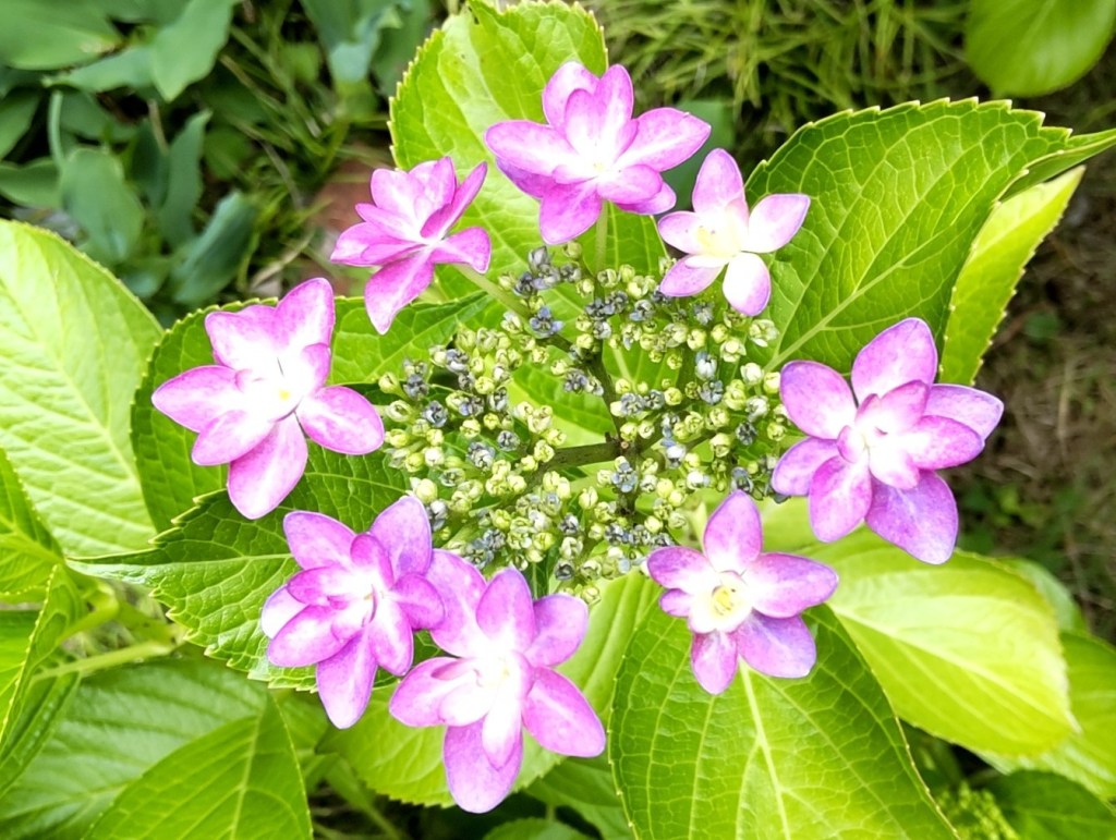 今、実家の庭に咲いている、ピンク色のあじさいです☆