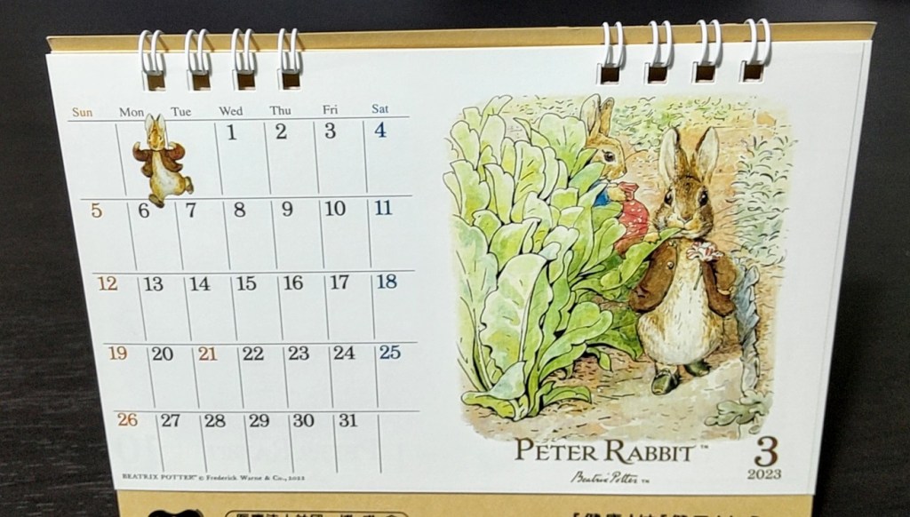 可愛いピーターラビットの、来年の卓上カレンダーを頂きました!