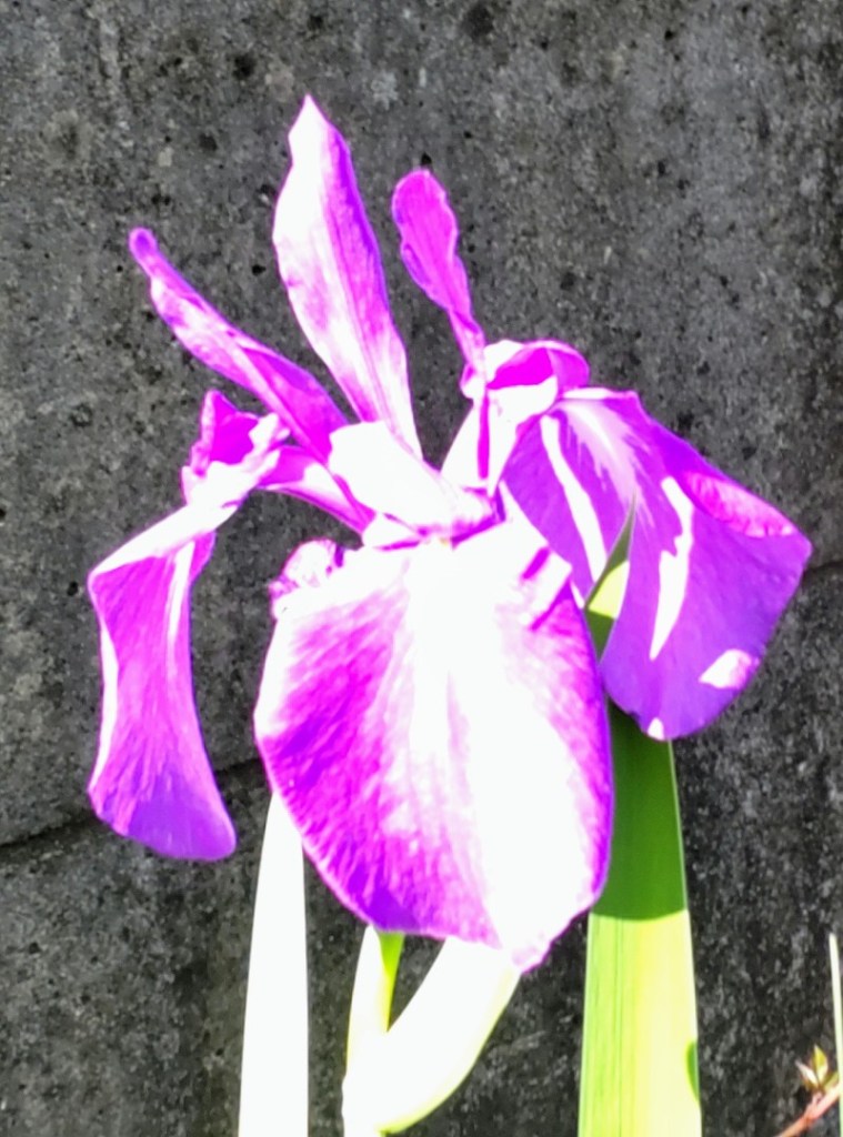 先程、ご近所で、 朝日に照らされたアイリスの花を、発見〜🎵