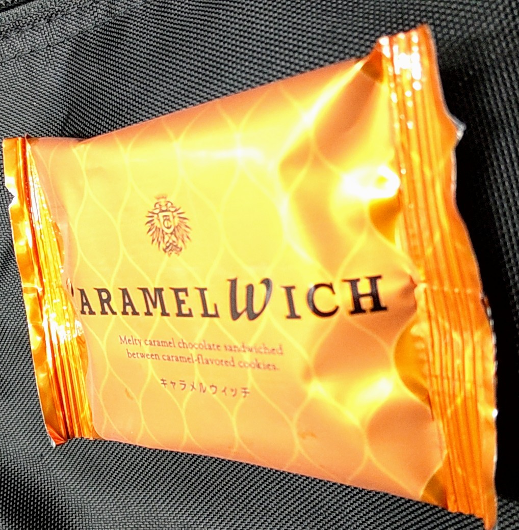 バイト先で、 キャラメル・チョコレートが、 キャラメル・フレーバー・クッキーでサンドされている、 こんなお菓子を、頂きました!