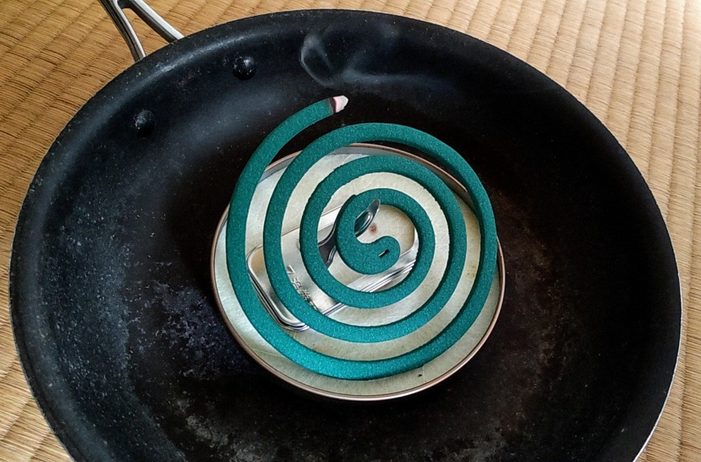 そこで、母が、 もう古くて使わなくなったフライパンを取り出して来て、 その上に、蚊取り線香を乗せました。
