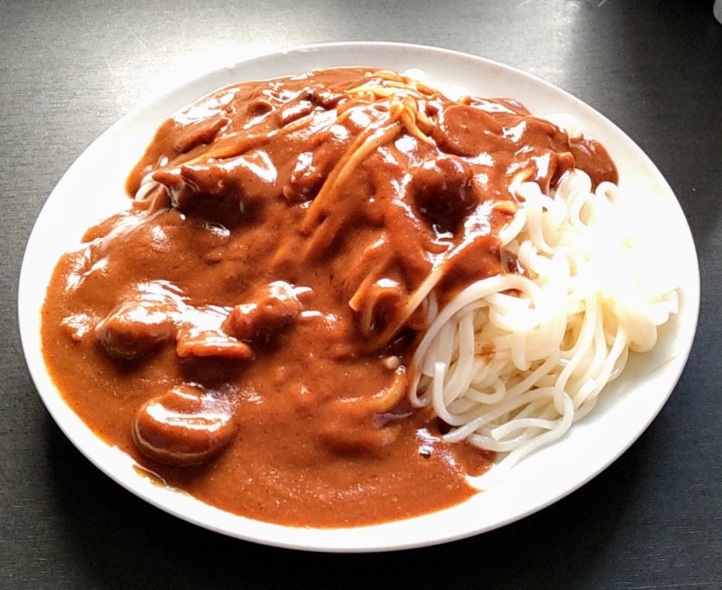 少し前に貰った、そうめんを茹でで、 レトルトカレーを上にかけるだけ☆