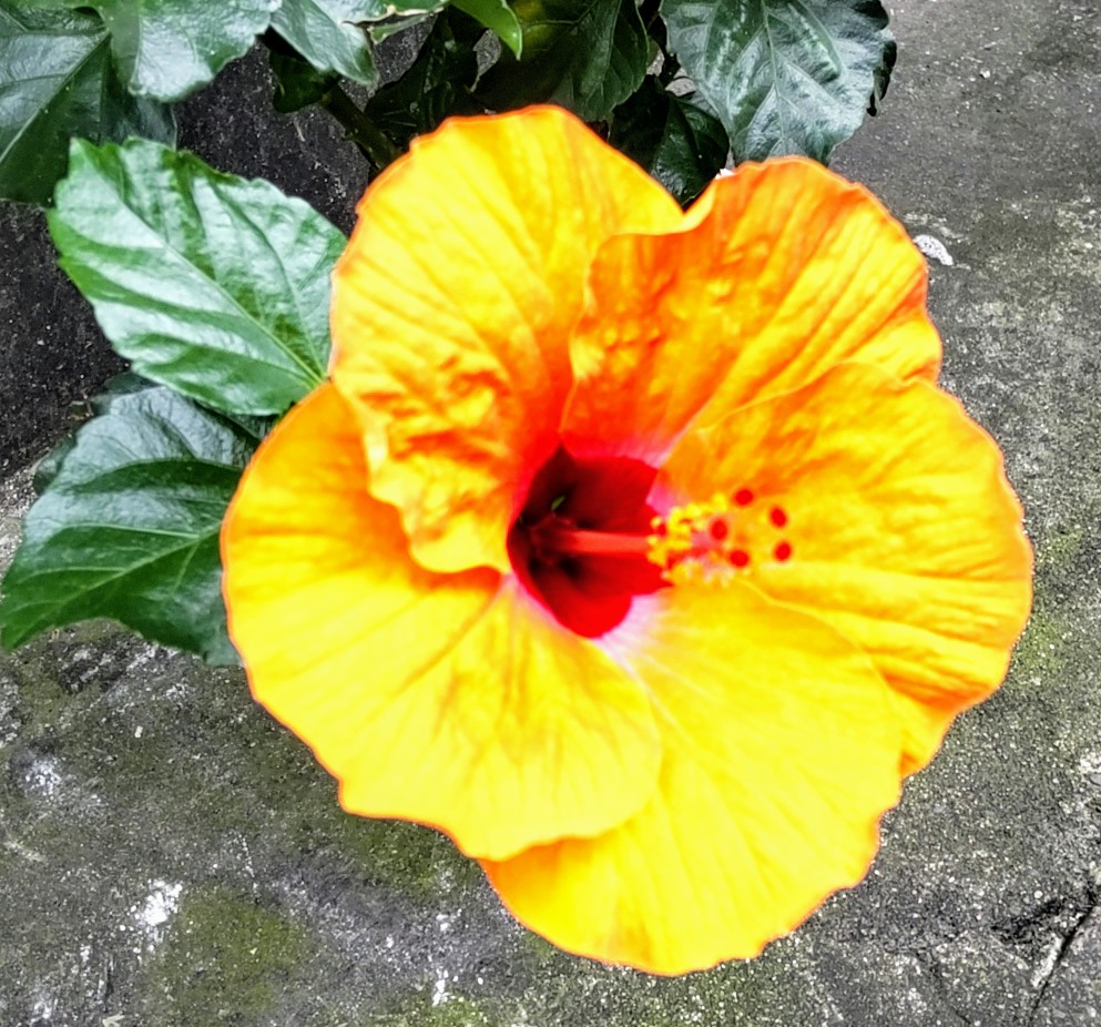 ある料理屋さんの前に咲いていた、オレンジ色のハイビスカス〜🎵
