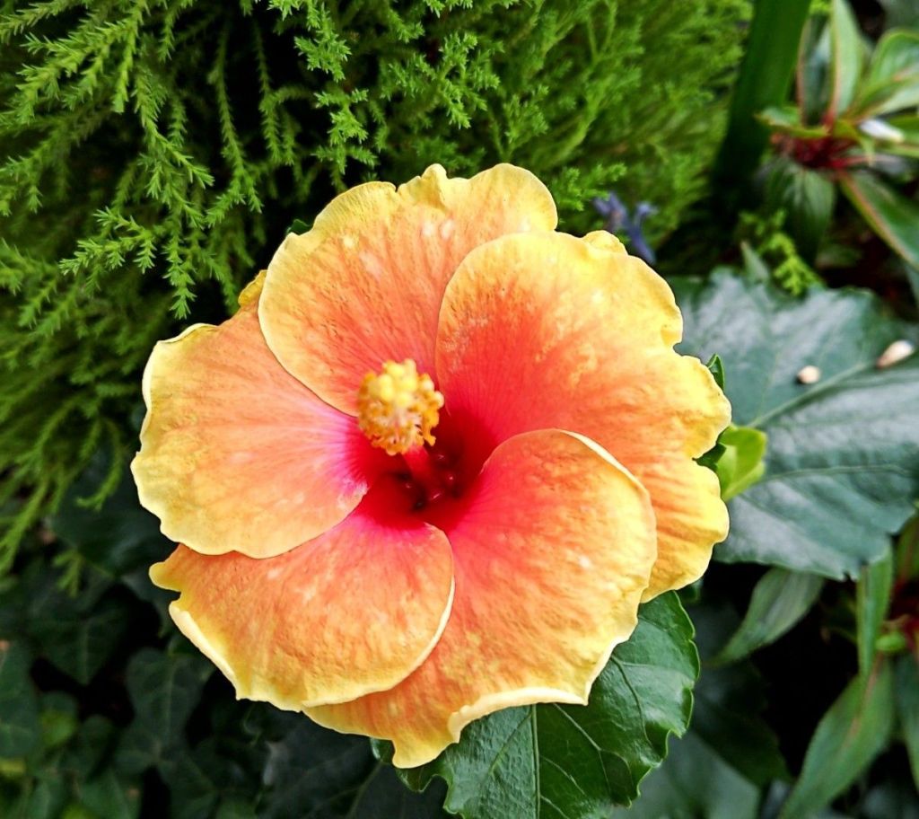 ライトオレンジ色の、ハイビスカスが、咲いていました〜🎵