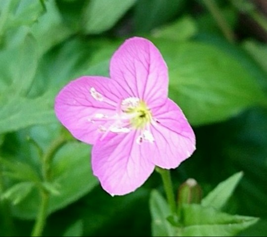 赤花夕化粧 (あかばなゆうげしょう)が、咲いていました♪