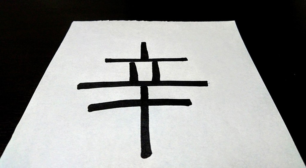 ↑ 「辛(つら)い」という漢字に、 一本、線を引くと・・・、