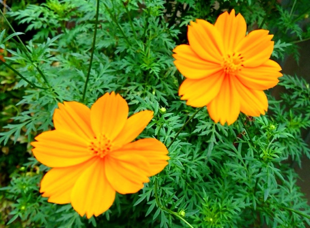 先程、 明るい オレンジ色の、キバナコスモスを、発見〜♪ (*^▽^*)