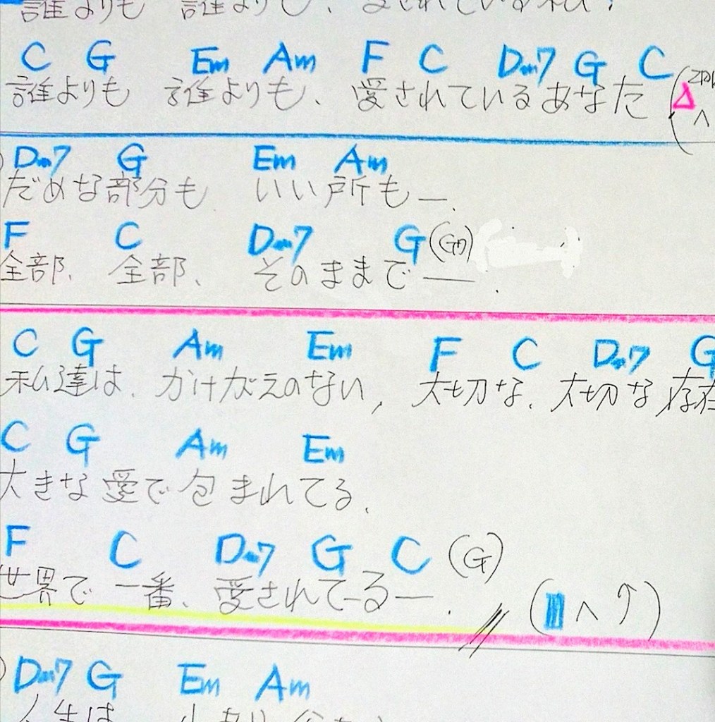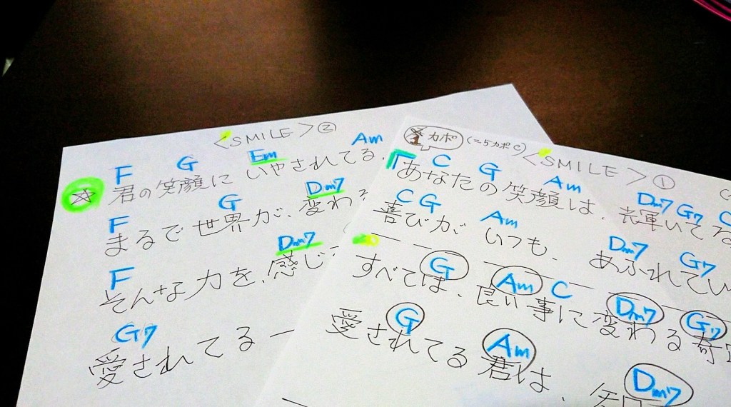 昨日の朝、 コンサートの前に、15分位で、 ギターのコ━ドチェンジした、マイ楽譜を 作りました!