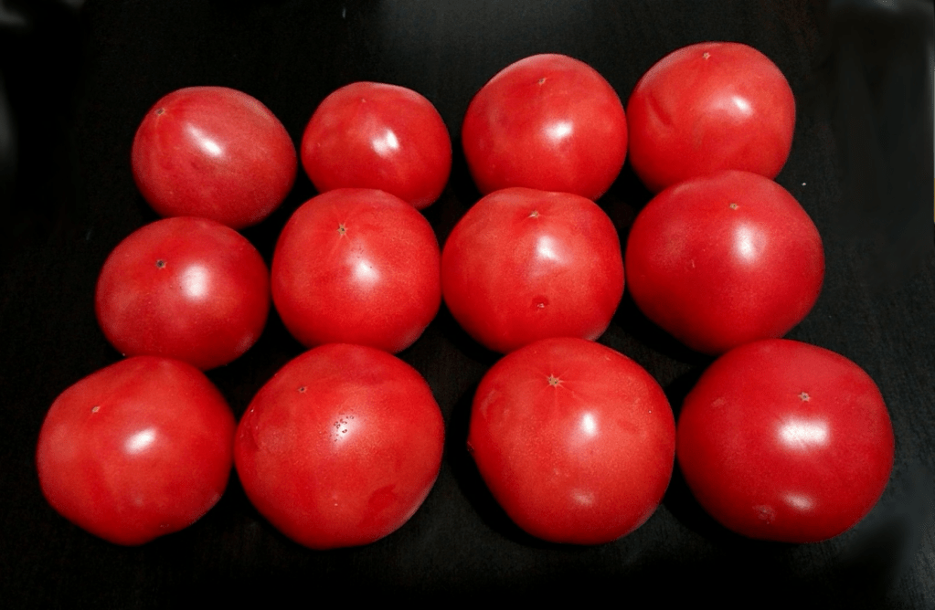 本日、八百屋さんで、 トマト半箱(12個)で、 何と! 500円でした〜♪ \(^_^)/\(^o^)/