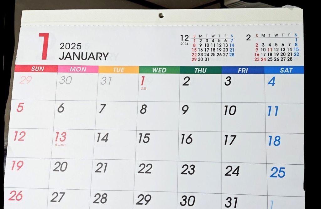 100円ショップで買った、書き込み式カレンダーに、スケジュールを書き込んで、