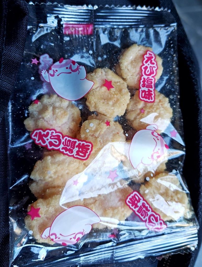 バイト先の方から、かわいいスモ一ルサイズの、えびせんべいを頂きました!