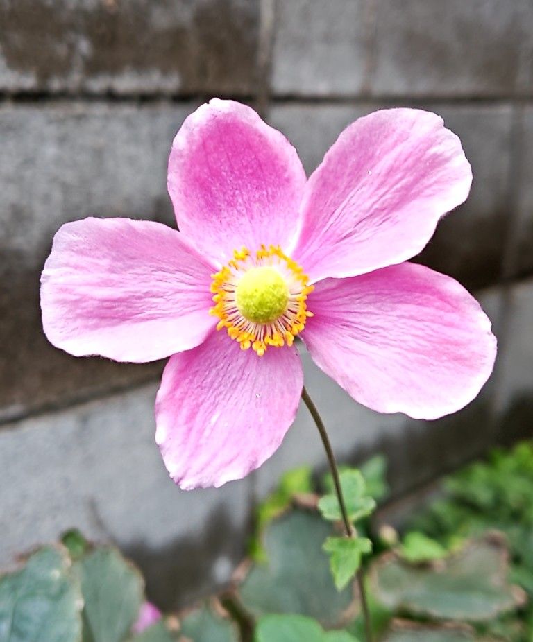 あるおうちの外に、ピンク色の秋明菊(シュウメイギク)が咲いていました!