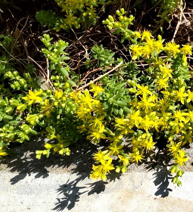 あるアパートの外に、万年草(まんねんぐさ)が、咲いていました!