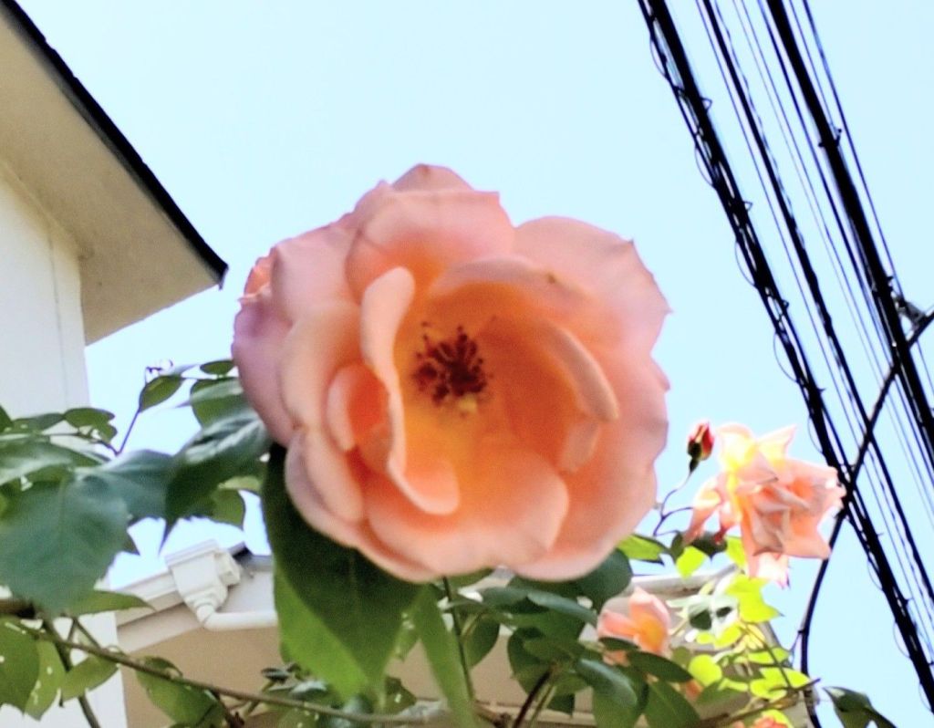 綺麗な、ピーチ・カラーのバラの花が、咲いていました!