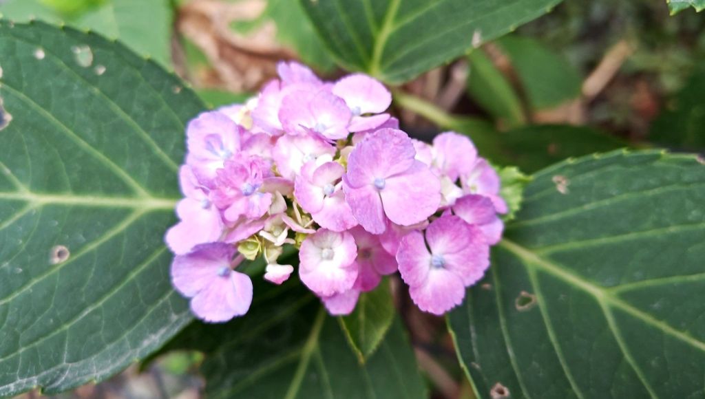 ピンク色の小さな あじさいを発見〜🎵